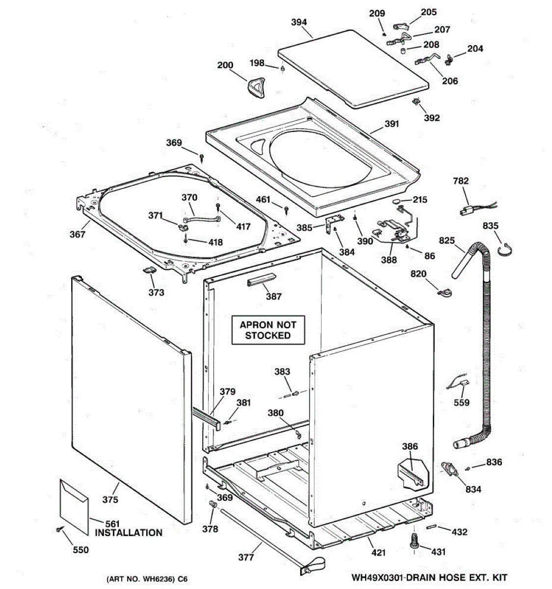 The Washer Top is an OEM part for GE washers. It is the upper panel that covers the internal components of the washing machine and provides a flat surface for loading and unloading laundry.