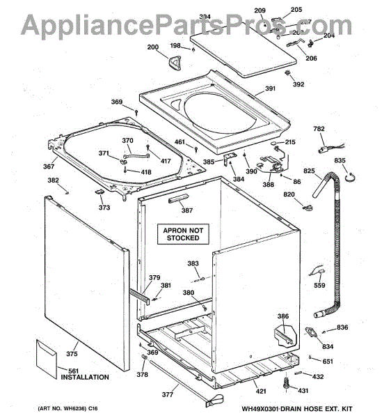 Note: For the entire drain hose, use part number WH41X10096.