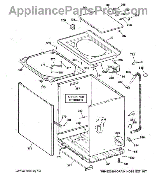 The Washer Top is an OEM part for GE washers. It is the upper panel that covers the internal components of the washing machine and provides a flat surface for loading and unloading laundry.
