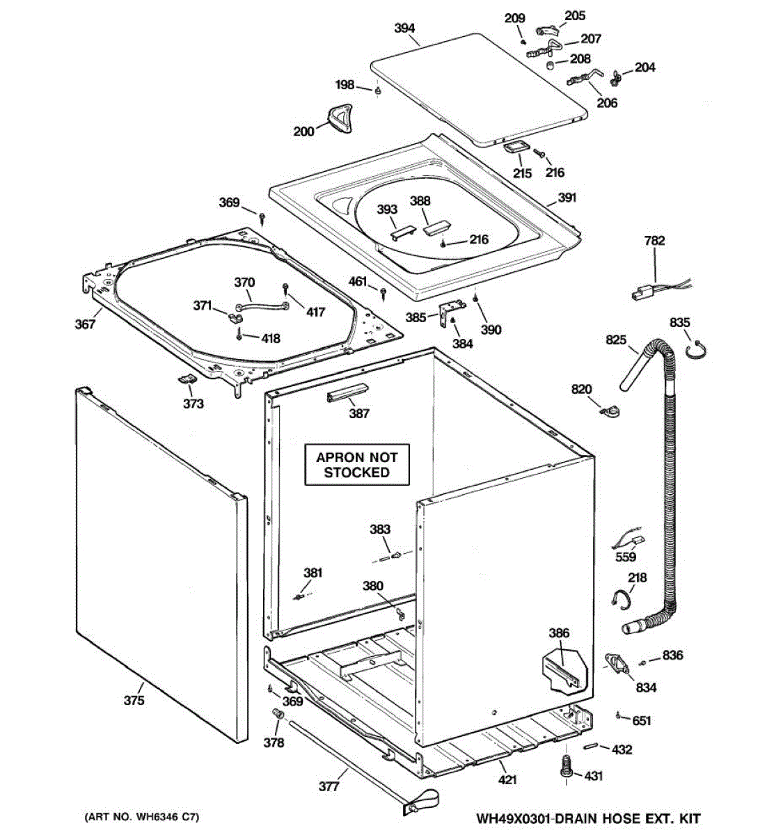 The Washer Top is an OEM part for GE washers. It is the upper panel that covers the internal components of the washing machine and provides a flat surface for loading and unloading laundry.