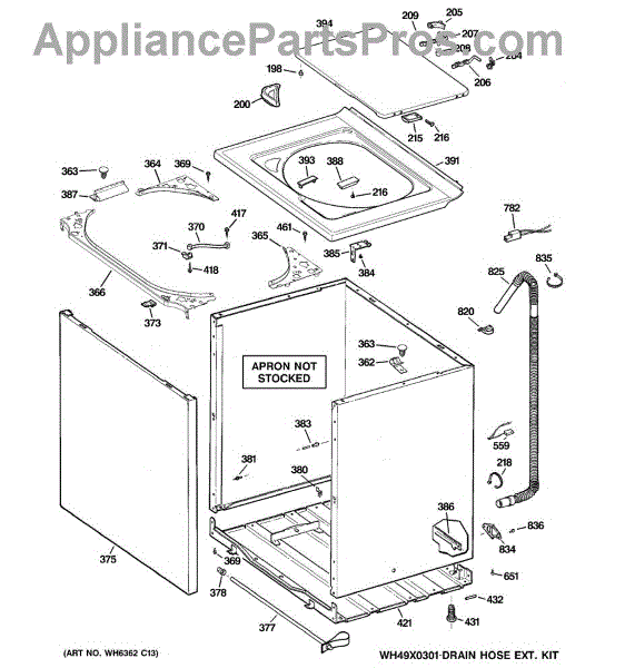 Note: For the entire drain hose, use part number WH41X10096.