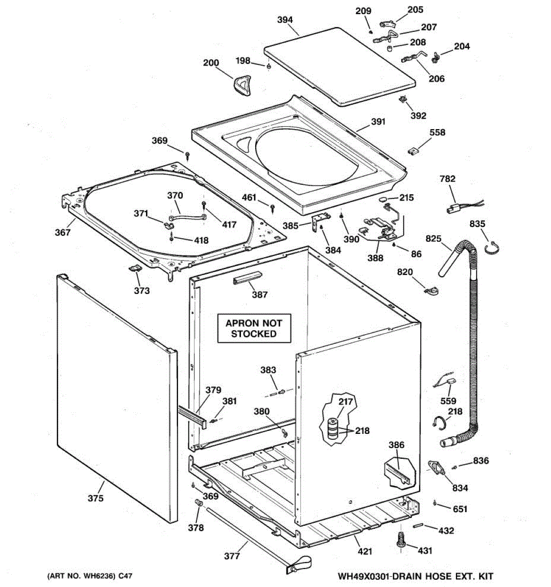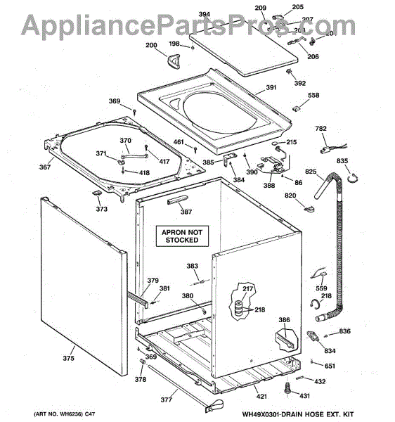 The Washer Top is an OEM part for GE washers. It is the upper panel that covers the internal components of the washing machine and provides a flat surface for loading and unloading laundry.