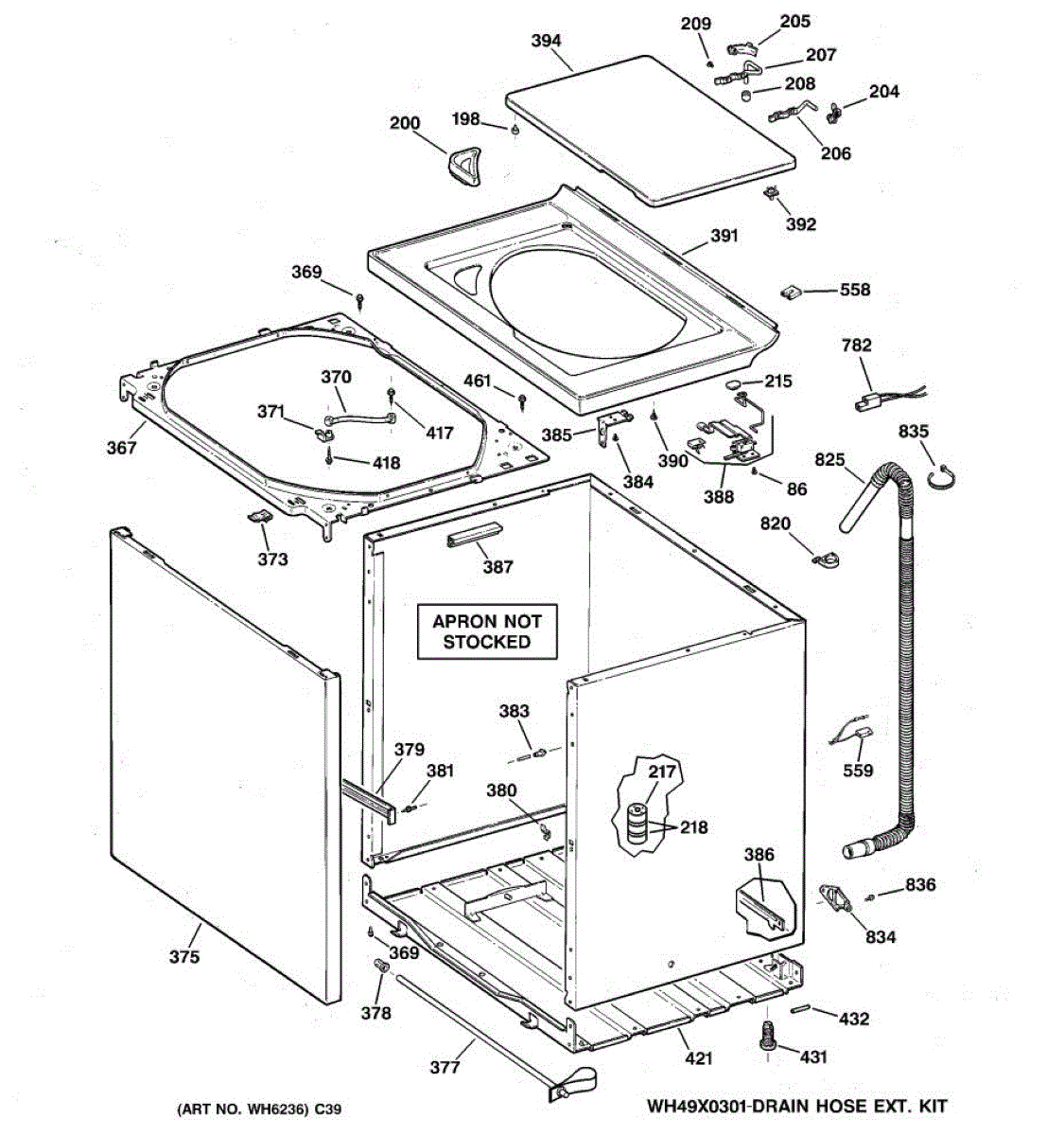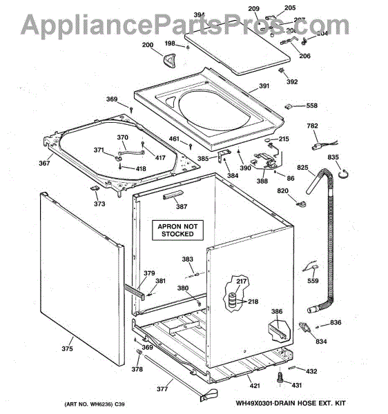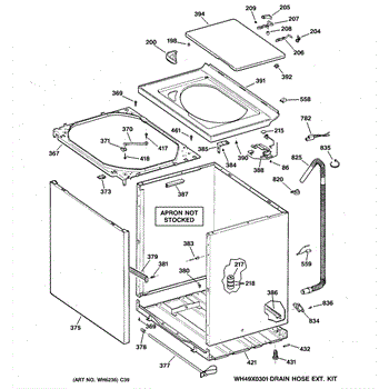 The Washer Top is an OEM part for GE washers. It is the upper panel that covers the internal components of the washing machine and provides a flat surface for loading and unloading laundry.