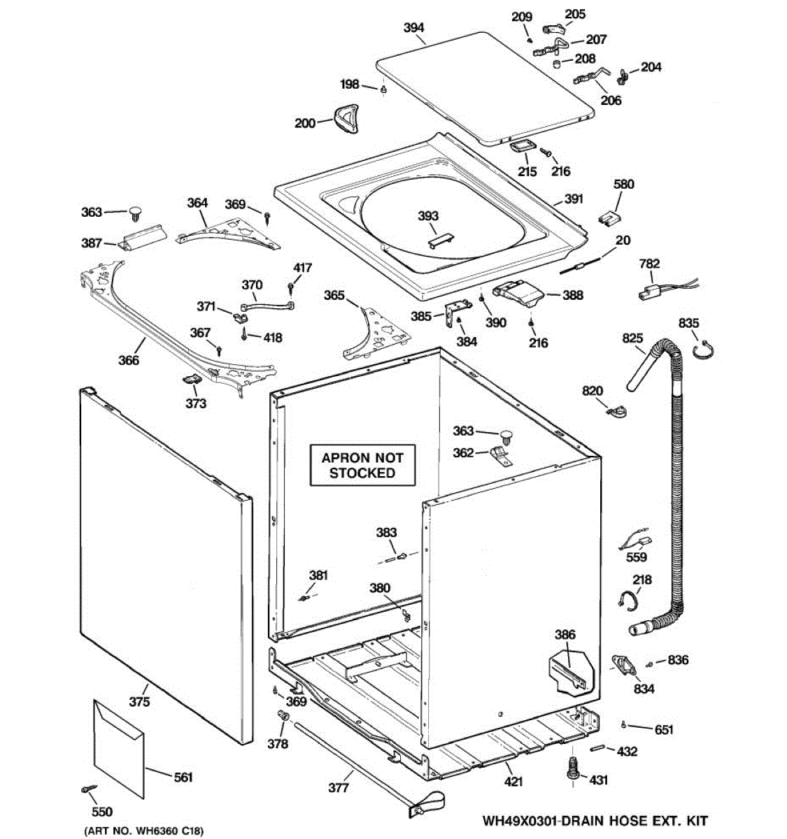 The Washer Top is an OEM part for GE washers. It is the upper panel that covers the internal components of the washing machine and provides a flat surface for loading and unloading laundry.
