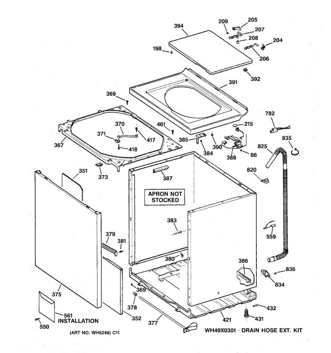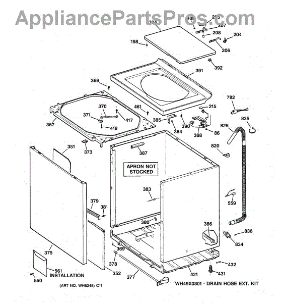 The Washer Top is an OEM part for GE washers. It is the upper panel that covers the internal components of the washing machine and provides a flat surface for loading and unloading laundry.
