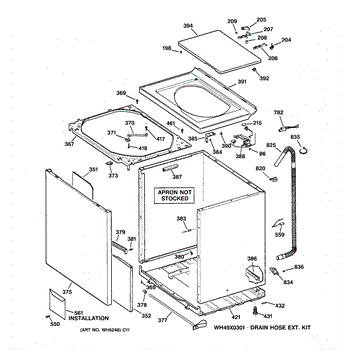 The Washer Top is an OEM part for GE washers. It is the upper panel that covers the internal components of the washing machine and provides a flat surface for loading and unloading laundry.