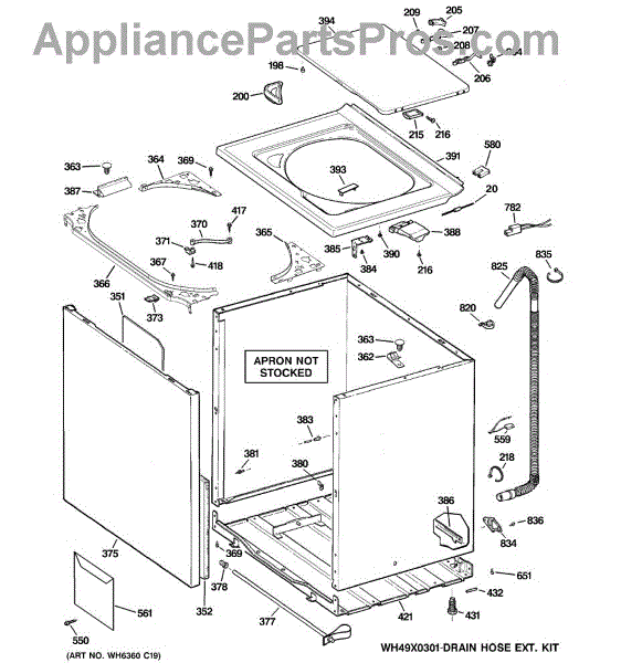 The Washer Top is an OEM part for GE washers. It is the upper panel that covers the internal components of the washing machine and provides a flat surface for loading and unloading laundry.