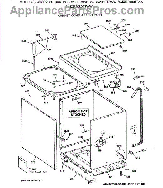 Parts for Ge WJXR2080T3WW: 02 - Cabinet, Cover & Front Panel Parts