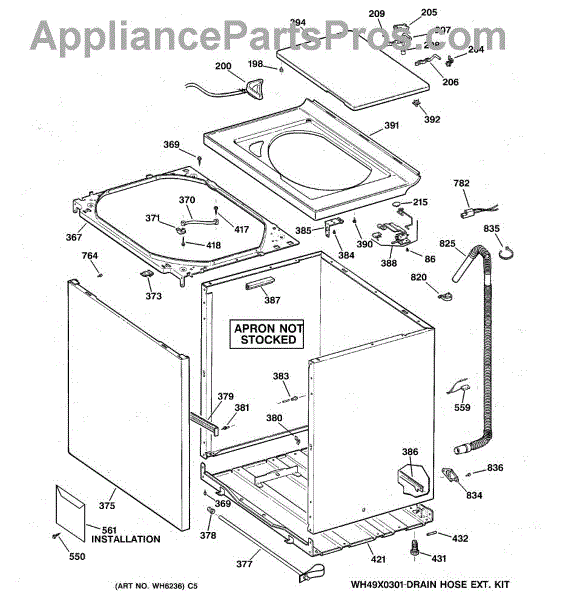 The Washer Top is an OEM part for GE washers. It is the upper panel that covers the internal components of the washing machine and provides a flat surface for loading and unloading laundry.