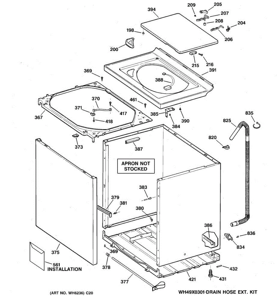 Parts for Ge WLE4000B1WW: 02 - Cabinet, Cover & Front Panel Parts