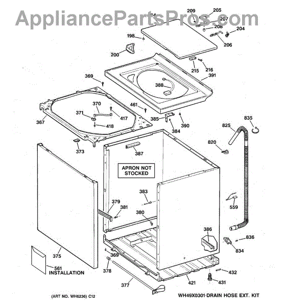 The Washer Top is an OEM part for GE washers. It is the upper panel that covers the internal components of the washing machine and provides a flat surface for loading and unloading laundry.