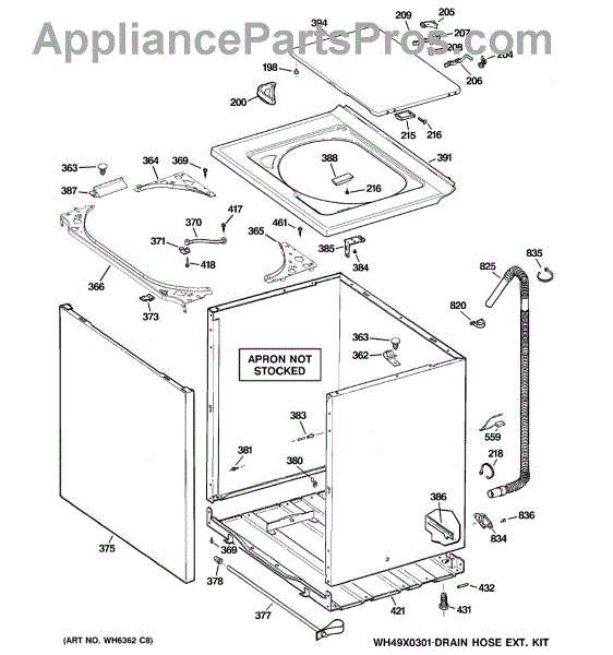 The Washer Top is an OEM part for GE washers. It is the upper panel that covers the internal components of the washing machine and provides a flat surface for loading and unloading laundry.