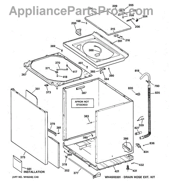 The Washer Top is an OEM part for GE washers. It is the upper panel that covers the internal components of the washing machine and provides a flat surface for loading and unloading laundry.