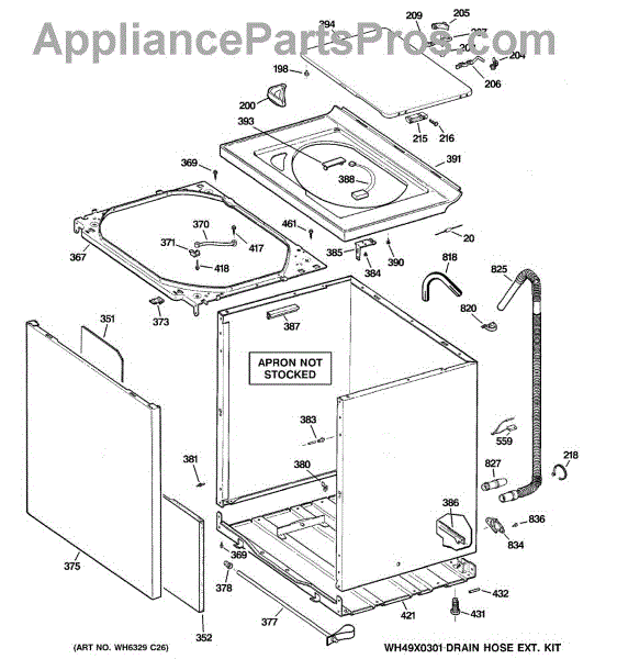 The Washer Top is an OEM part for GE washers. It is the upper panel that covers the internal components of the washing machine and provides a flat surface for loading and unloading laundry.