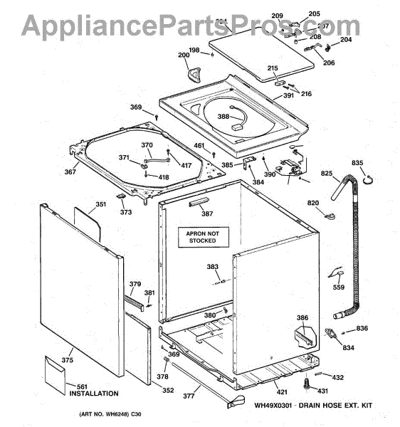 Parts for Ge WNSB8060B1WW: 02 - Cabinet, Cover & Front Panel Parts