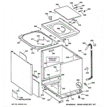 The Washer Top is an OEM part for GE washers. It is the upper panel that covers the internal components of the washing machine and provides a flat surface for loading and unloading laundry.