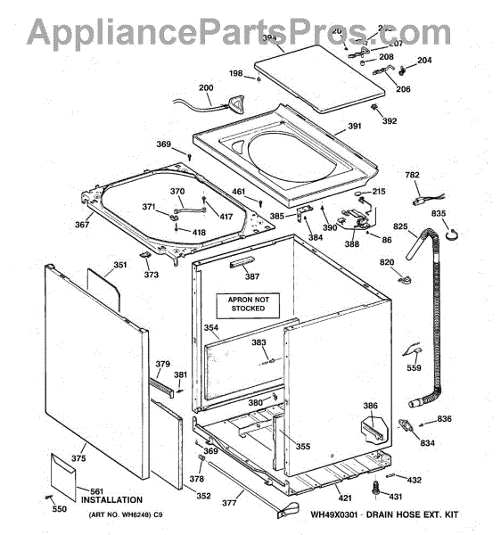 Note: For the entire drain hose, use part number WH41X10096.