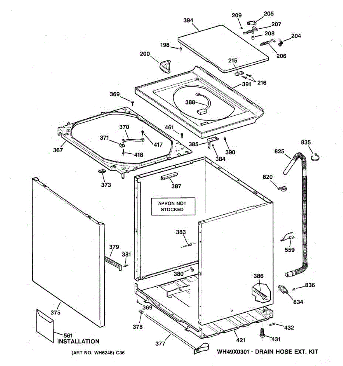 The Washer Top is an OEM part for GE washers. It is the upper panel that covers the internal components of the washing machine and provides a flat surface for loading and unloading laundry.