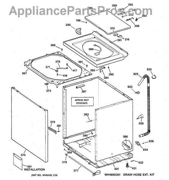 Parts for Ge WSSE5210B3WW: 02 - Cabinet, Cover & Front Panel Parts