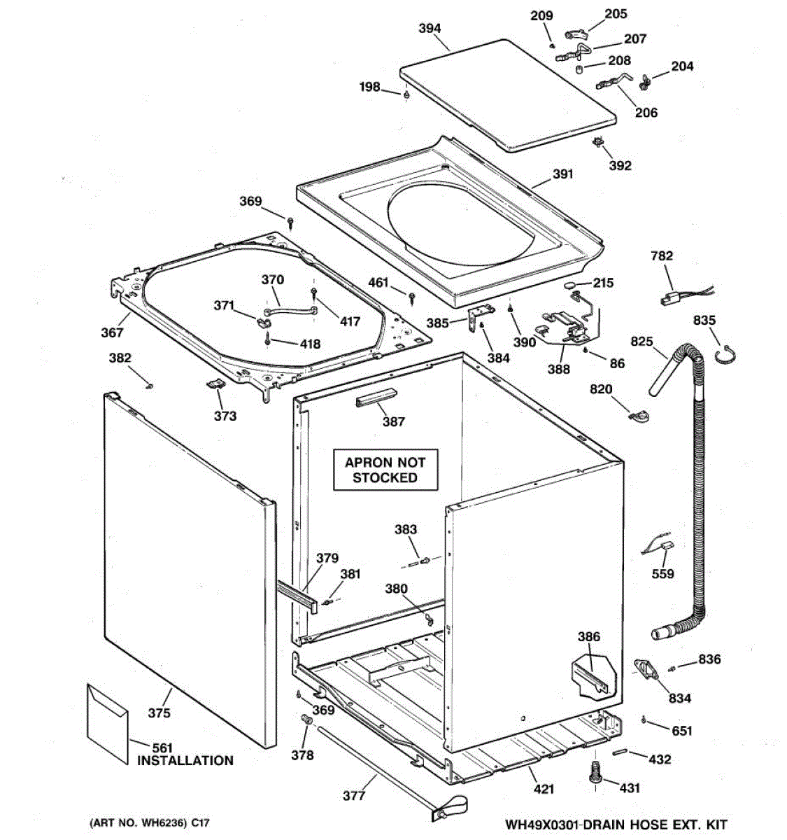 The Washer Top is an OEM part for GE washers. It is the upper panel that covers the internal components of the washing machine and provides a flat surface for loading and unloading laundry.