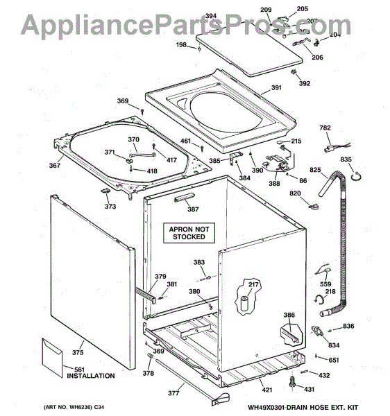 Parts for Ge WVSR1060B4WW: 02 - Cabinet, Cover & Front Panel Parts