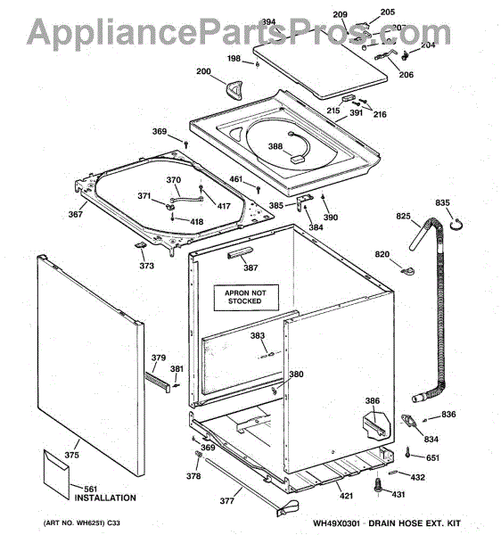 The Washer Top is an OEM part for GE washers. It is the upper panel that covers the internal components of the washing machine and provides a flat surface for loading and unloading laundry.