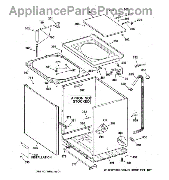The Washer Top is an OEM part for GE washers. It is the upper panel that covers the internal components of the washing machine and provides a flat surface for loading and unloading laundry.