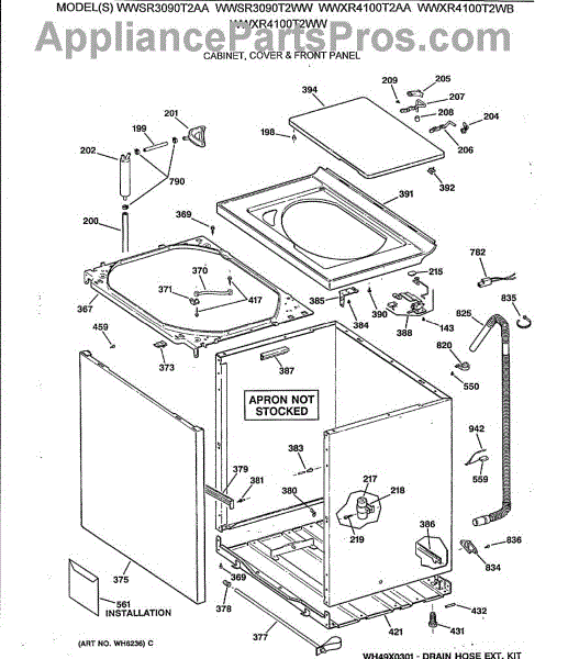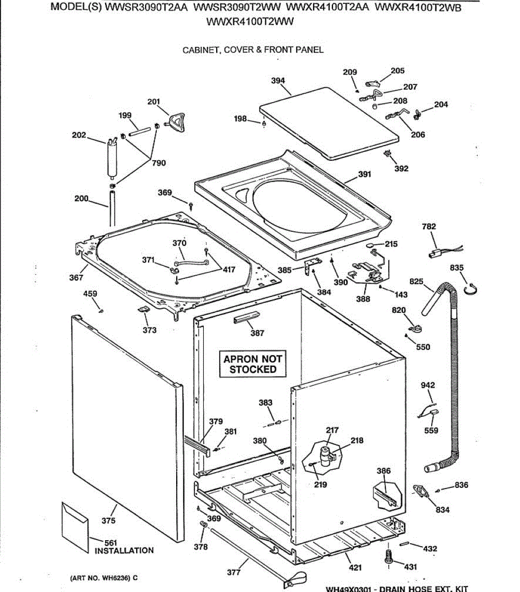 Parts for Ge WWXR4100T2WB: 02 - Cabinet, Cover & Front Panel Parts