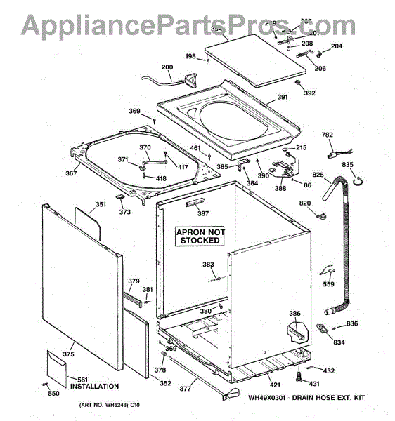 This GE replacement part is also compatible with Hotpoint, RCA, and some Kenmore models. Note: For the entire drain hose, use part number WH41X10096.