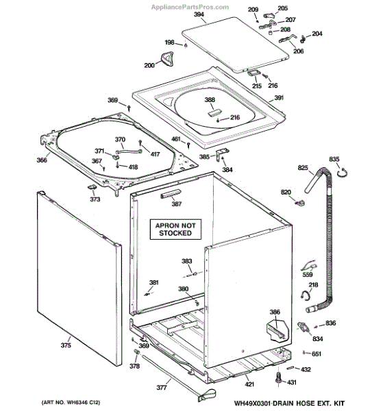 The Washer Top is an OEM part for GE washers. It is the upper panel that covers the internal components of the washing machine and provides a flat surface for loading and unloading laundry.