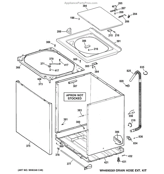 The Washer Top is an OEM part for GE washers. It is the upper panel that covers the internal components of the washing machine and provides a flat surface for loading and unloading laundry.