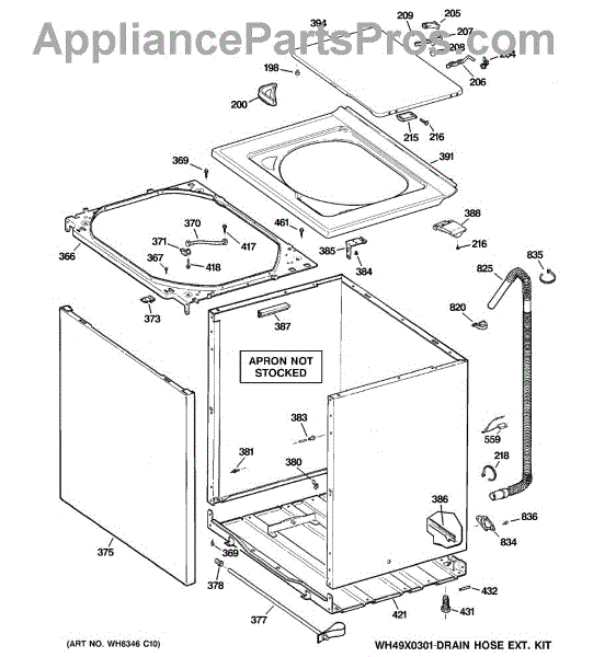 The Washer Top is an OEM part for GE washers. It is the upper panel that covers the internal components of the washing machine and provides a flat surface for loading and unloading laundry.