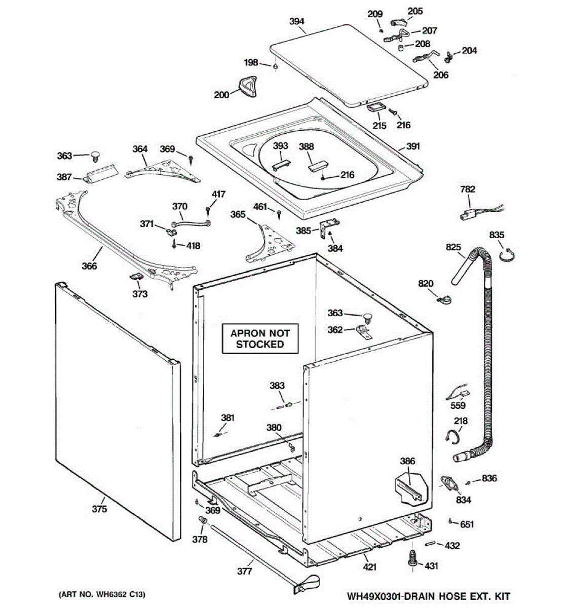 The Washer Top is an OEM part for GE washers. It is the upper panel that covers the internal components of the washing machine and provides a flat surface for loading and unloading laundry.