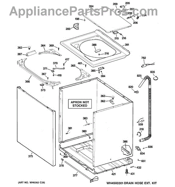 The Washer Top is an OEM part for GE washers. It is the upper panel that covers the internal components of the washing machine and provides a flat surface for loading and unloading laundry.