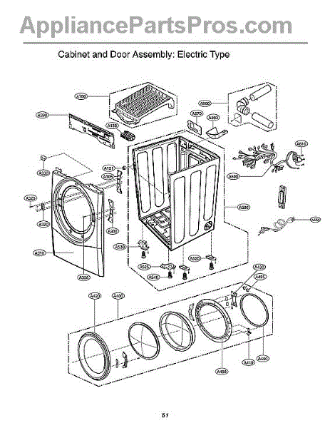 The Door Seal is an OEM part for LG dryers. It forms a tight seal around the dryer door, preventing heat and moisture from escaping during the drying cycle, which ensures efficient drying and energy use.