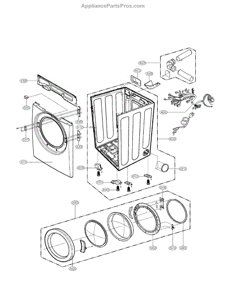 This outer door frame is the replacement trim that surrounds the appliance's front door, restoring a secure fit and finished appearance. It replaces a cracked, dented or worn frame to help the door close properly and look like new. What it does:
