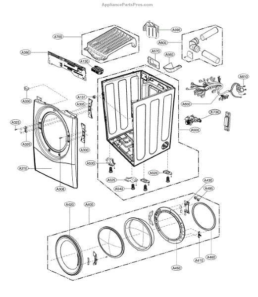 The LG Dryer Wire Harness is an OEM part for LG dryers. It is a comprehensive wiring bundle that connects several critical dryer components.