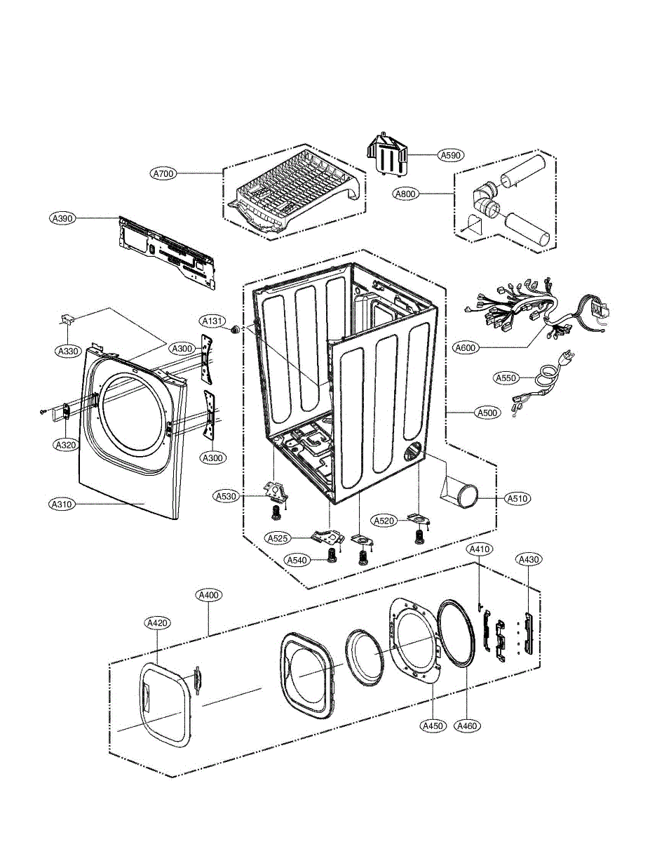 Complete dryer door assembly that installs on the front of the cabinet. Replaces scratched, cracked, or damaged doors to restore your dryer's appearance.
