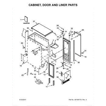 Parts for Kenmore 106.89599102 (10689599102, 106 89599102): Cabinet, Door And Liner Parts