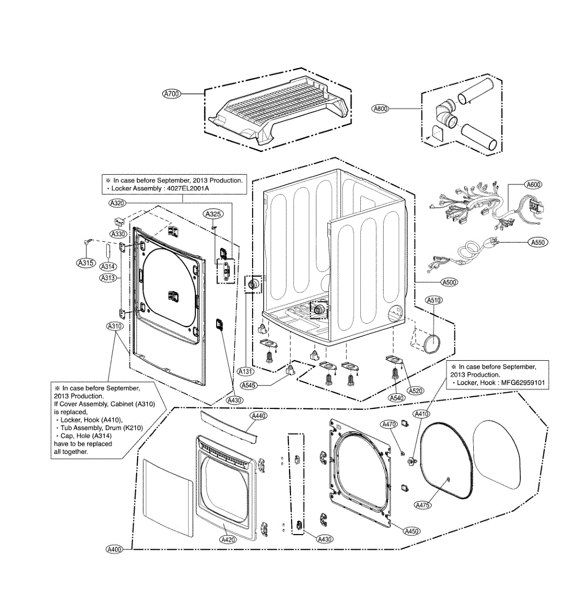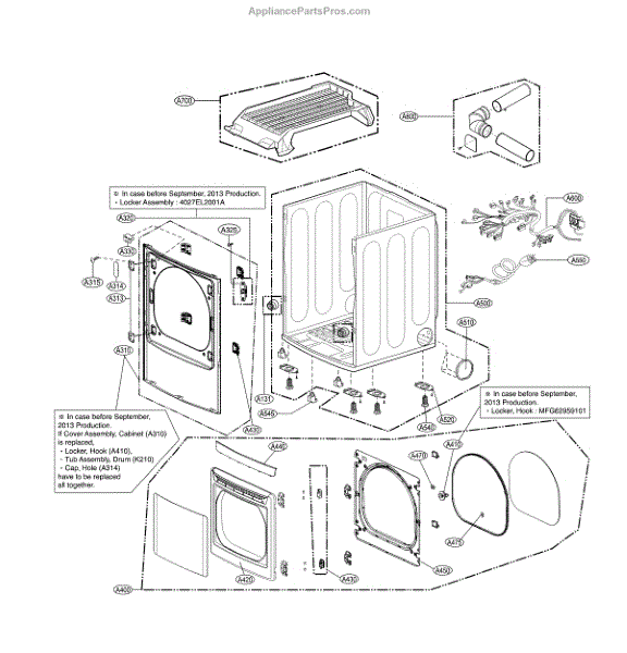 This duct assembly channels airflow inside the appliance to guide exhaust and internal air between components. Replacing a damaged or obstructed duct helps restore proper airflow and can reduce poor performance or long cycles. What it does: