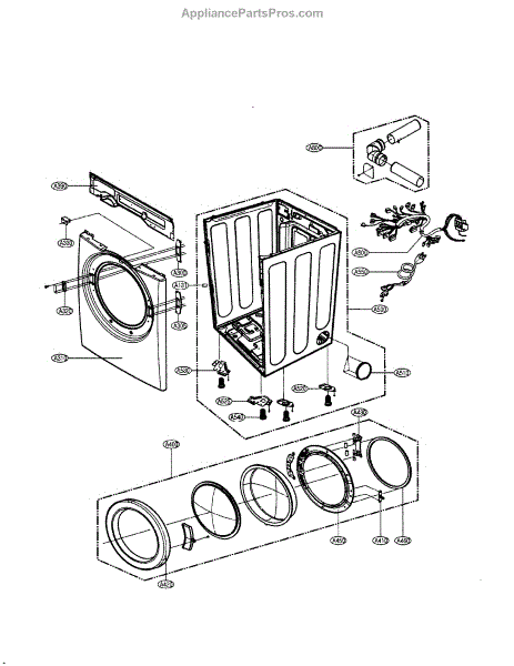 This outer door frame is the replacement trim that surrounds the appliance's front door, restoring a secure fit and finished appearance. It replaces a cracked, dented or worn frame to help the door close properly and look like new. What it does: