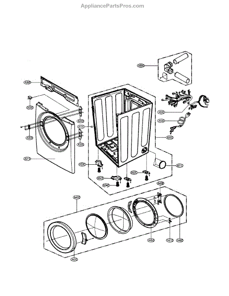 This outer door frame is the replacement trim that surrounds the appliance's front door, restoring a secure fit and finished appearance. It replaces a cracked, dented or worn frame to help the door close properly and look like new. What it does:
