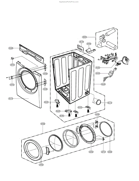 This outer door frame is the replacement trim that surrounds the appliance's front door, restoring a secure fit and finished appearance. It replaces a cracked, dented or worn frame to help the door close properly and look like new. What it does: