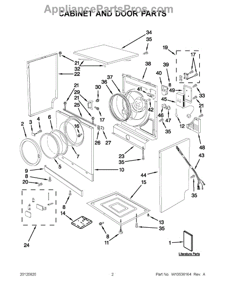 This factory screw secures appliance components to their mounting points. Replace missing, worn, or stripped hardware to restore a tight fit, proper alignment, and quieter operation across the affected assembly.