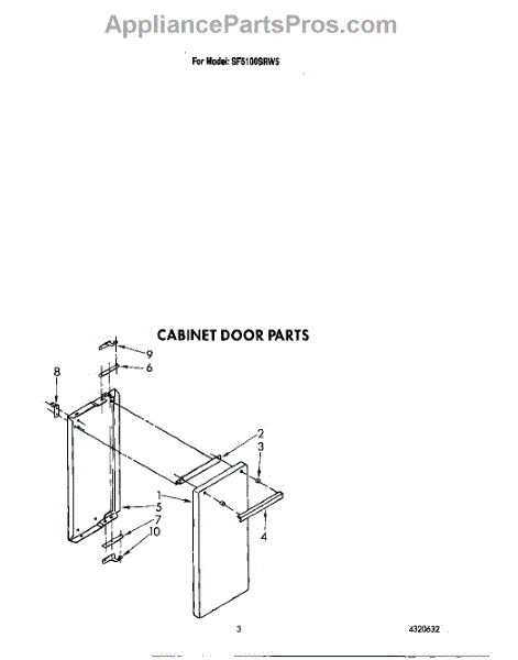 Parts for Whirlpool SF5100SRW5: 03 - Cabinet Door Parts