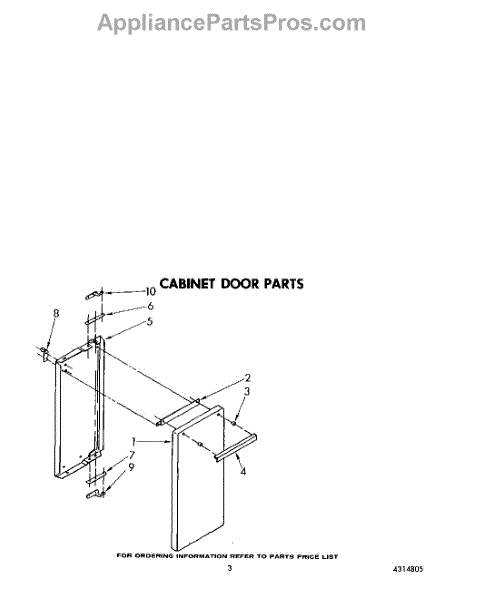 Parts for Whirlpool SF5140ERW1: 03 - Cabinet Door Parts
