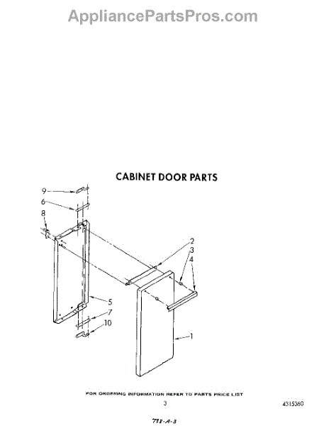 Parts for Whirlpool SF5340ERW6: 03 - Cabinet Door Parts