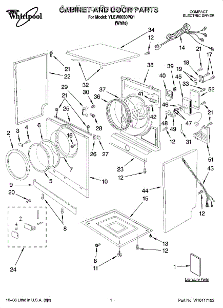 This factory screw secures appliance components to their mounting points. Replace missing, worn, or stripped hardware to restore a tight fit, proper alignment, and quieter operation across the affected assembly.