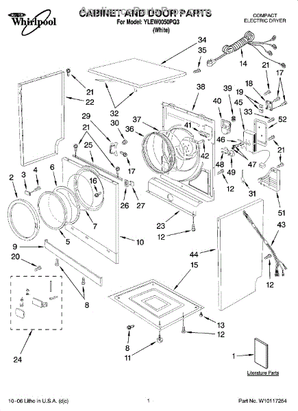 This factory screw secures appliance components to their mounting points. Replace missing, worn, or stripped hardware to restore a tight fit, proper alignment, and quieter operation across the affected assembly.
