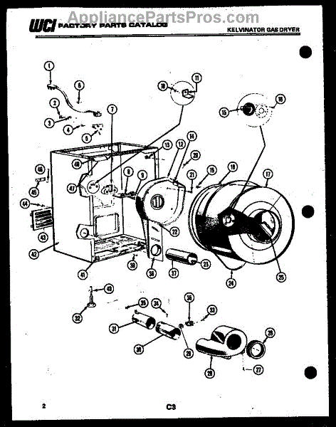 Parts for Frigidaire DGS100CW1: 02 - Cabinet, Drum And Blower Housing Parts